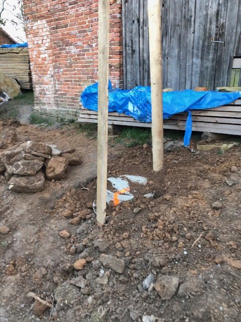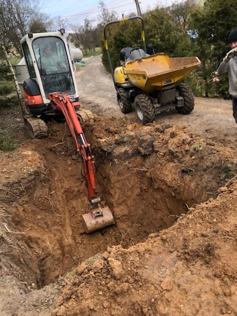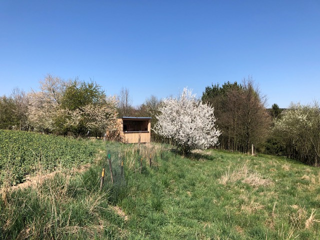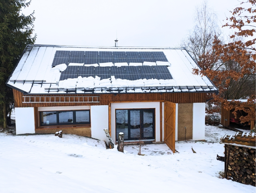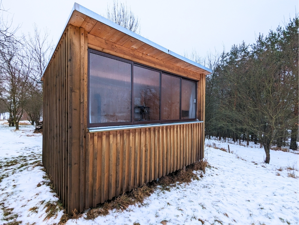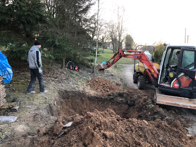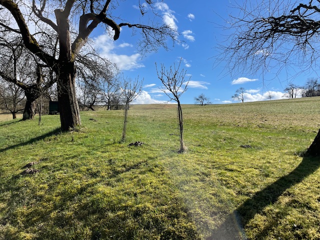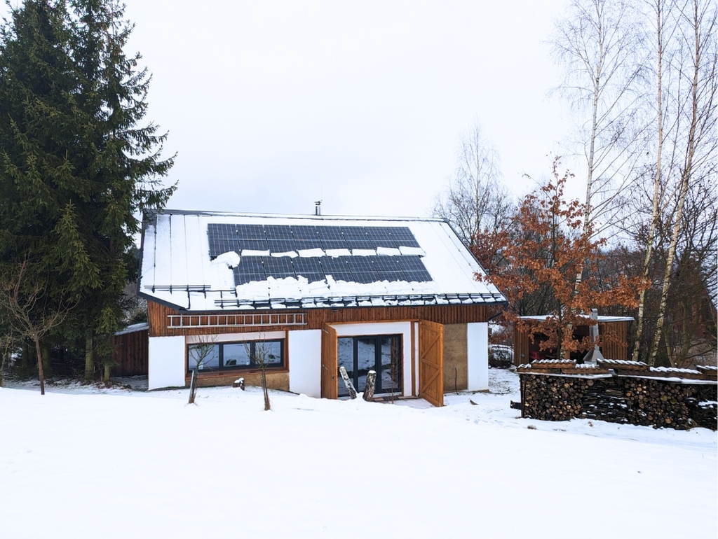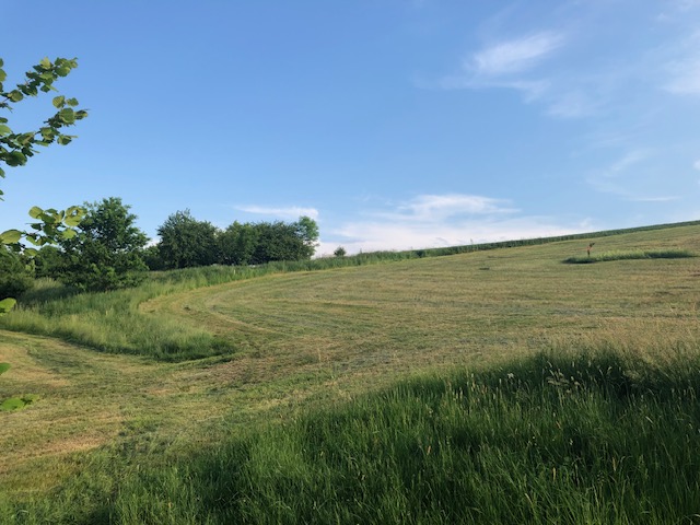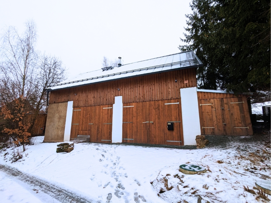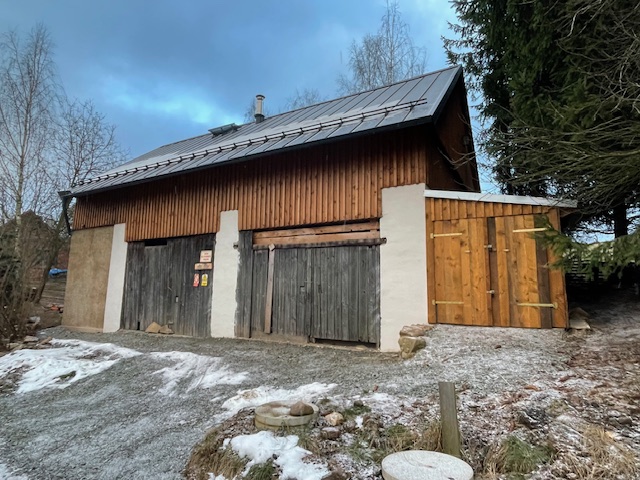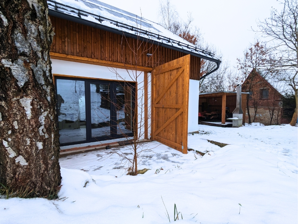 Červená: cesta / Žlutá: parkování / Modrá: hranice pozemku