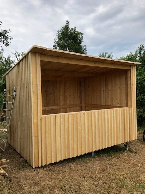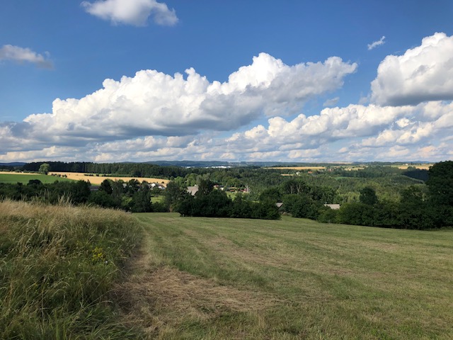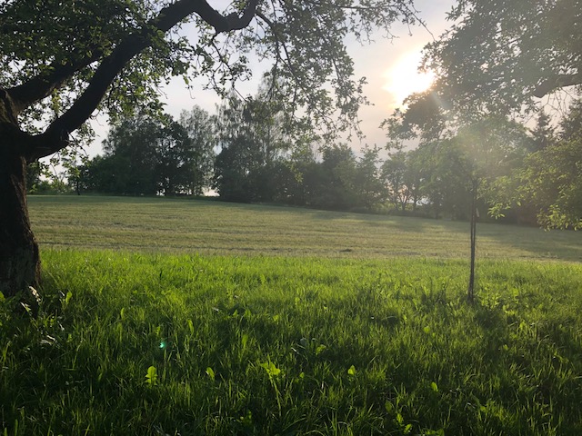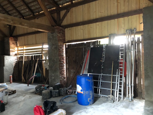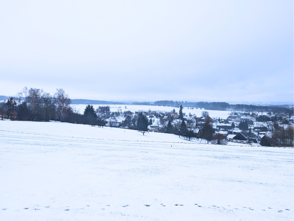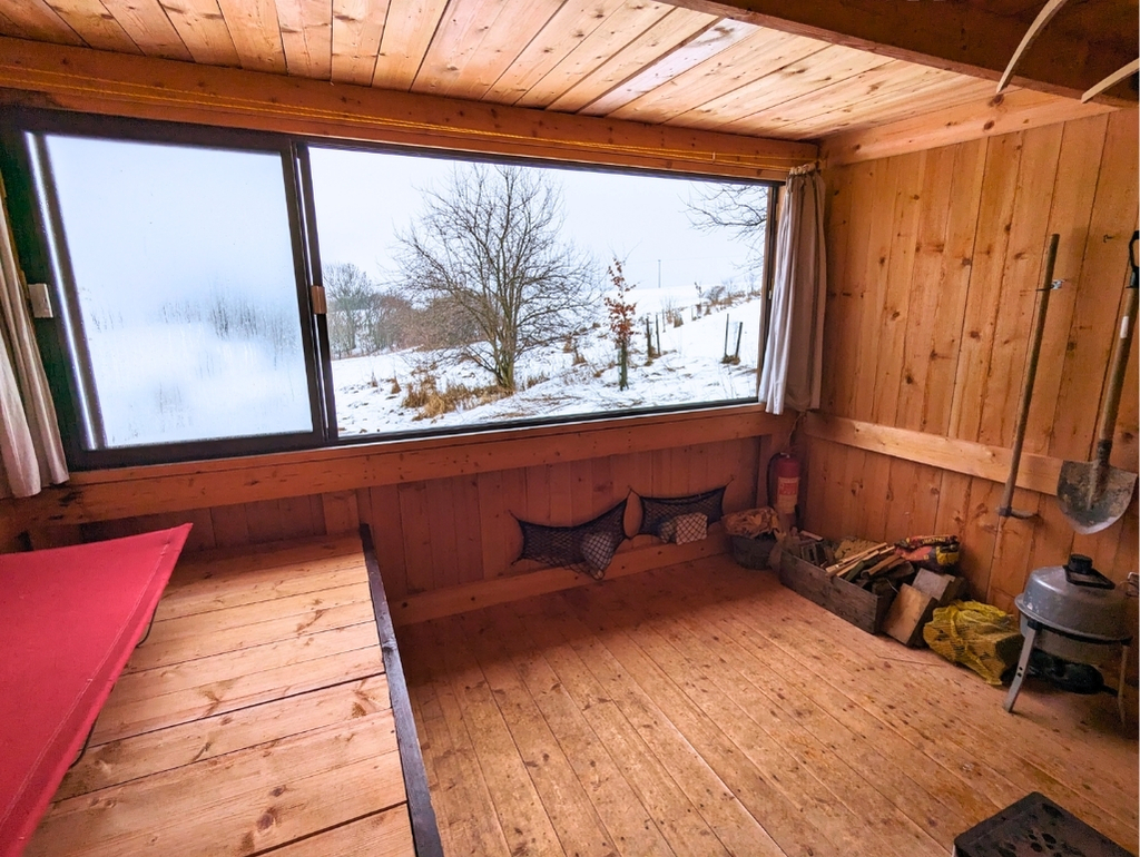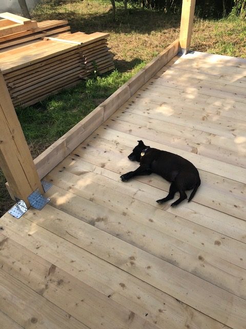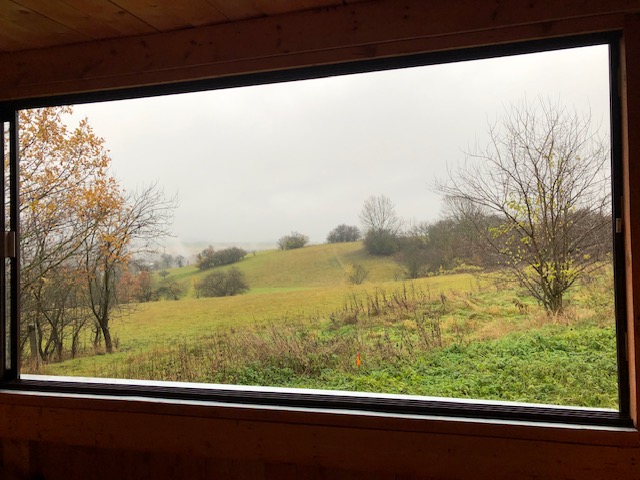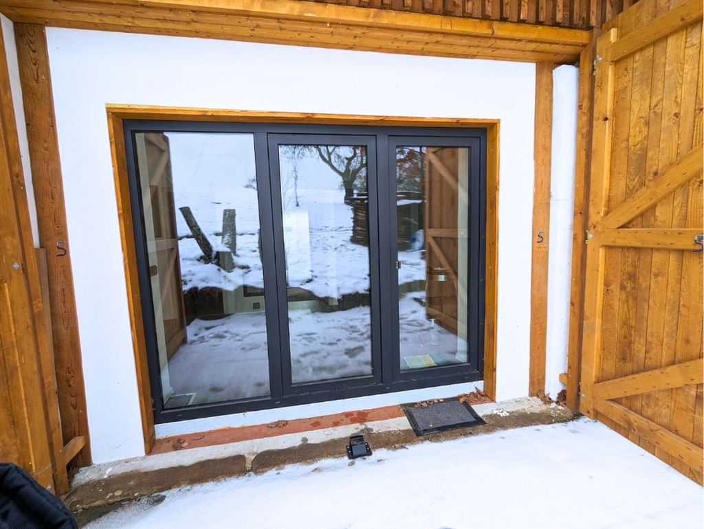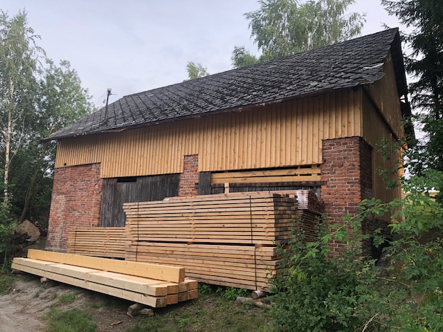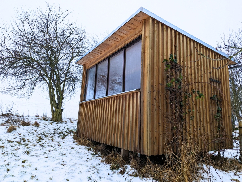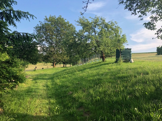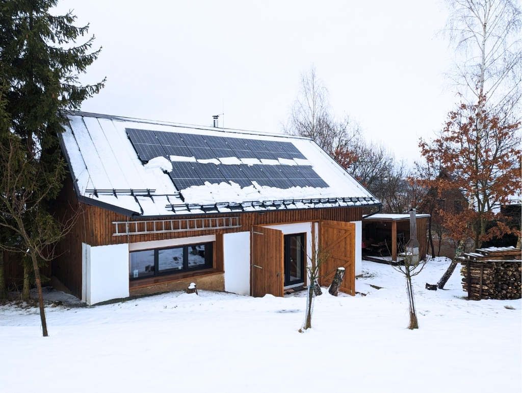 Červená: cesta / Žlutá: parkování / Modrá: hranice pozemku