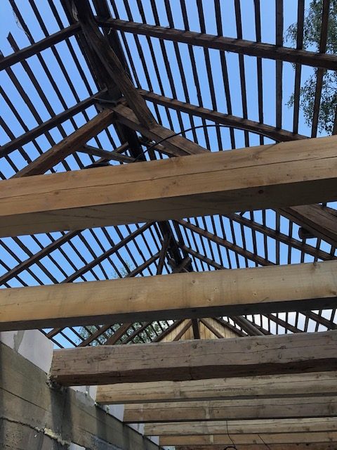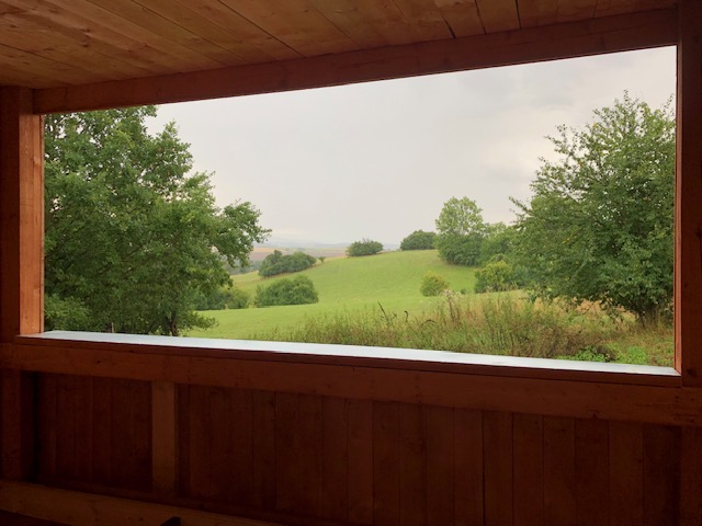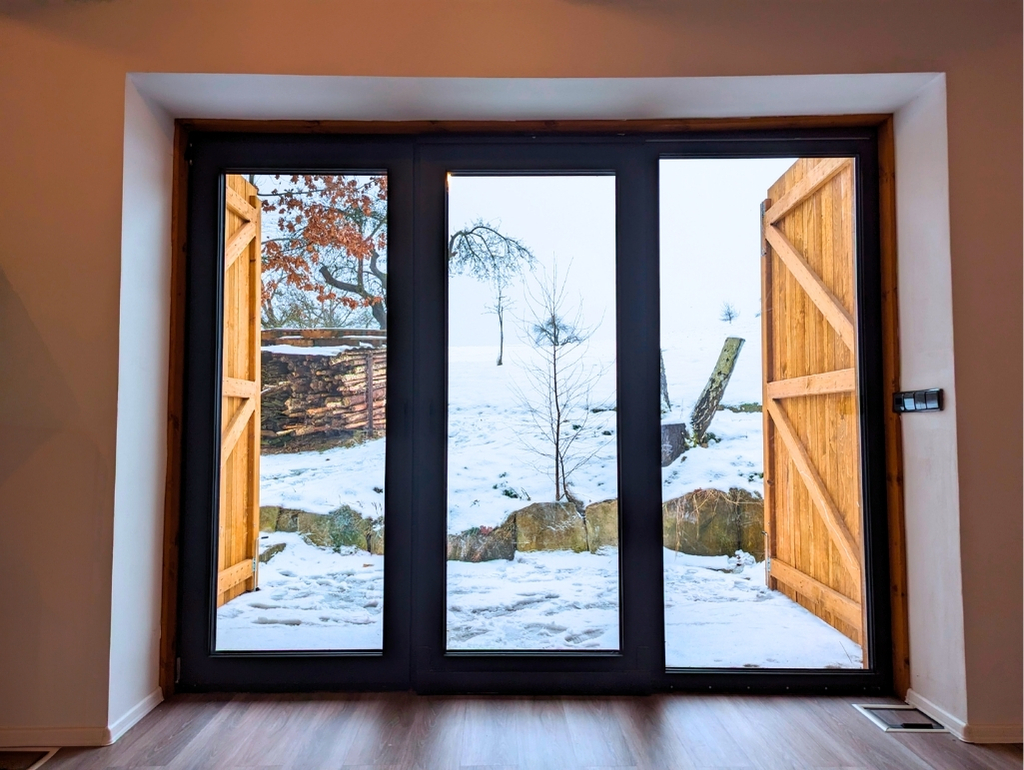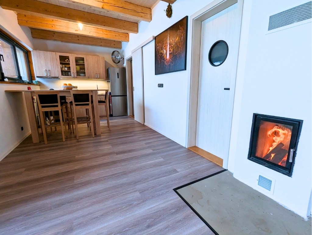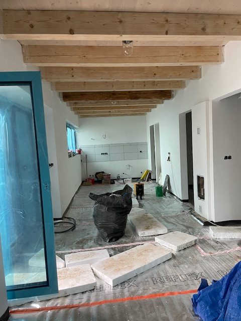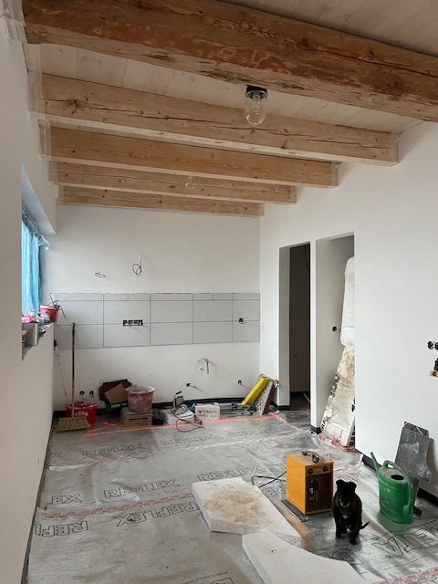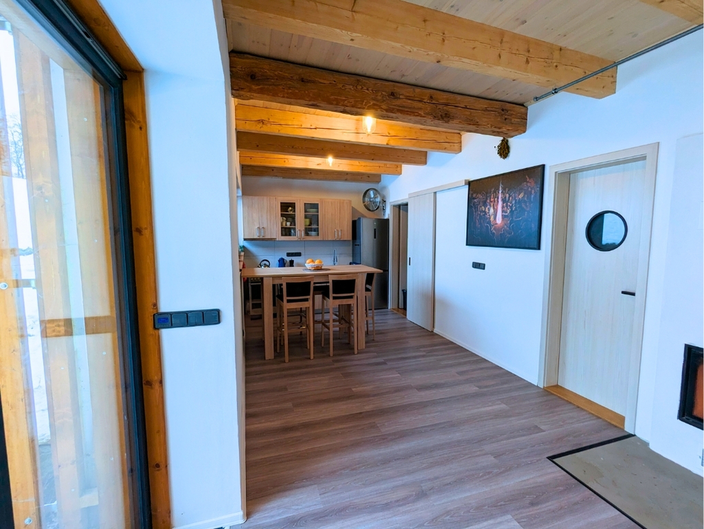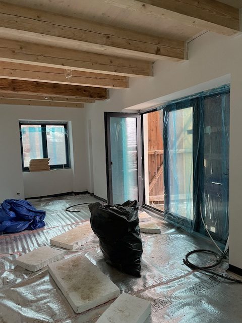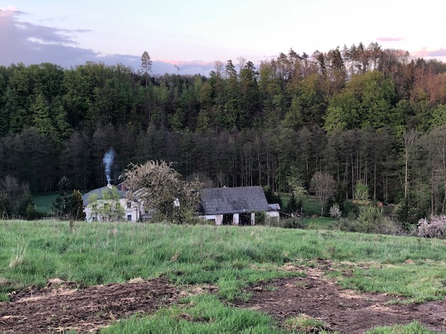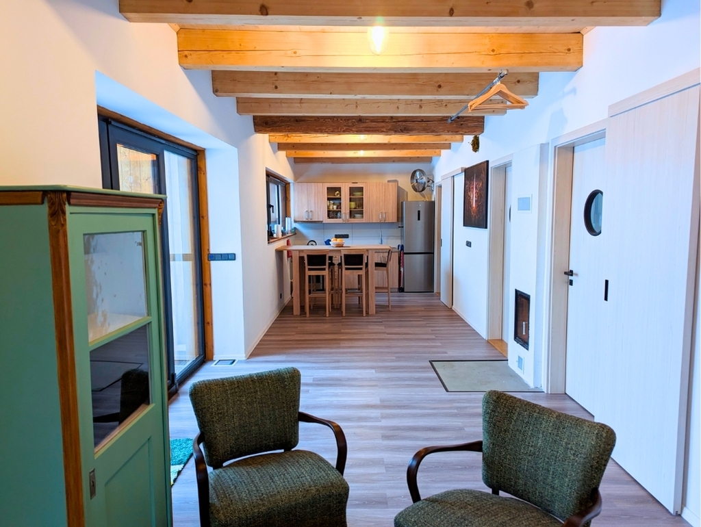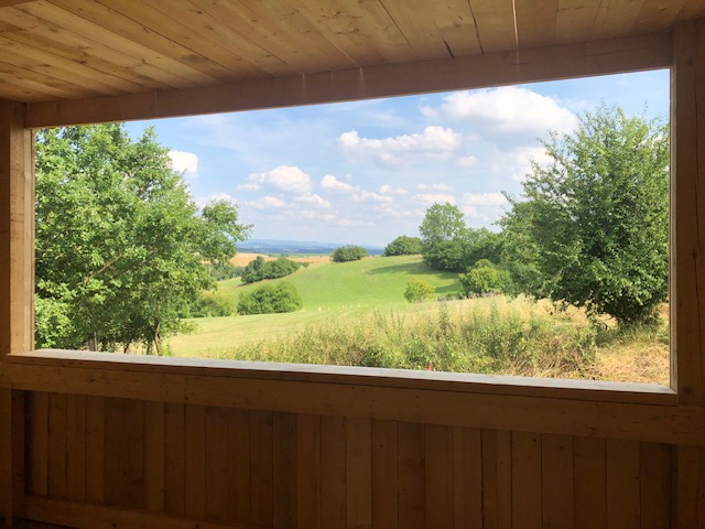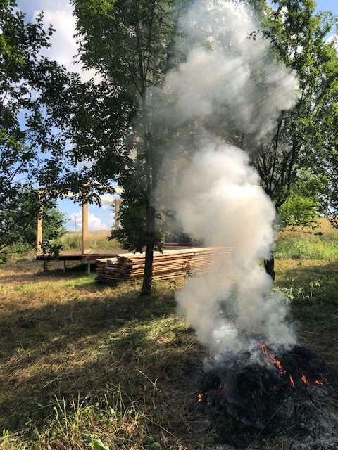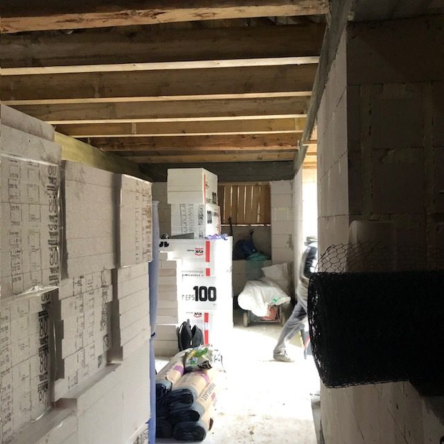 Červená: cesta / Žlutá: parkování / Modrá: hranice pozemku